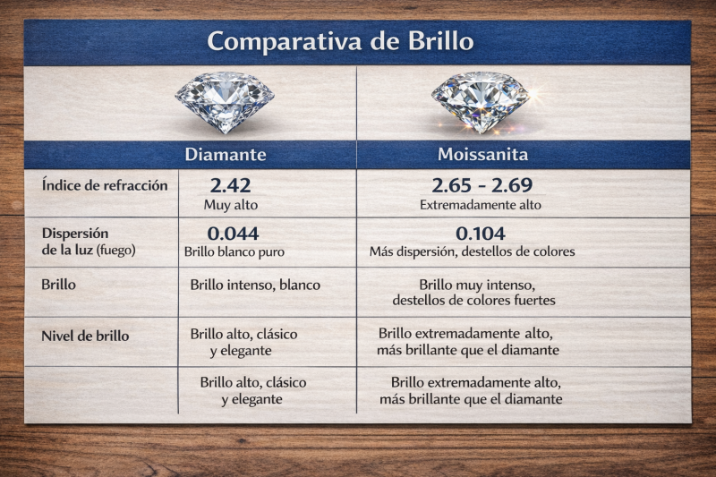 Tabla Comparativa Brillo: Moissnitta VS diamod