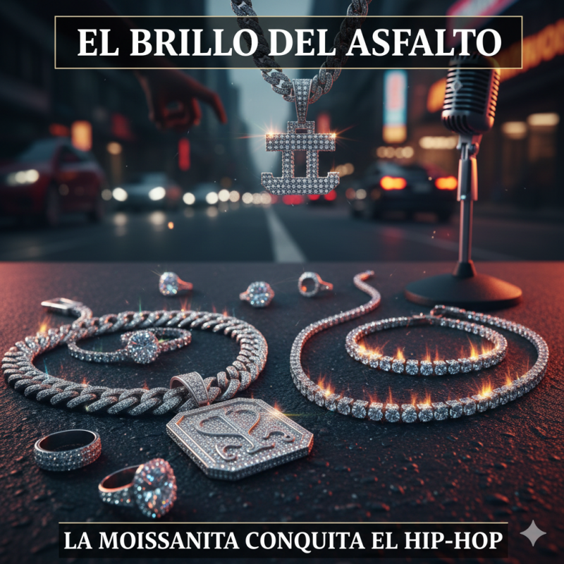 Artistas independientes en plataformas como SoundCloud y TikTok han sido los pioneros en normalizar la moissanita. Han demostrado que no necesitas arruinarte para tener una cadena cubana de 15mm que deje ciego a cualquiera en la primera fila de un concierto.