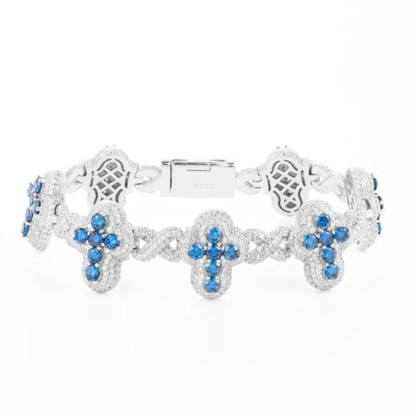 Pulsera 20mm eslabones cruz azul Plata de primera ley + moissanita