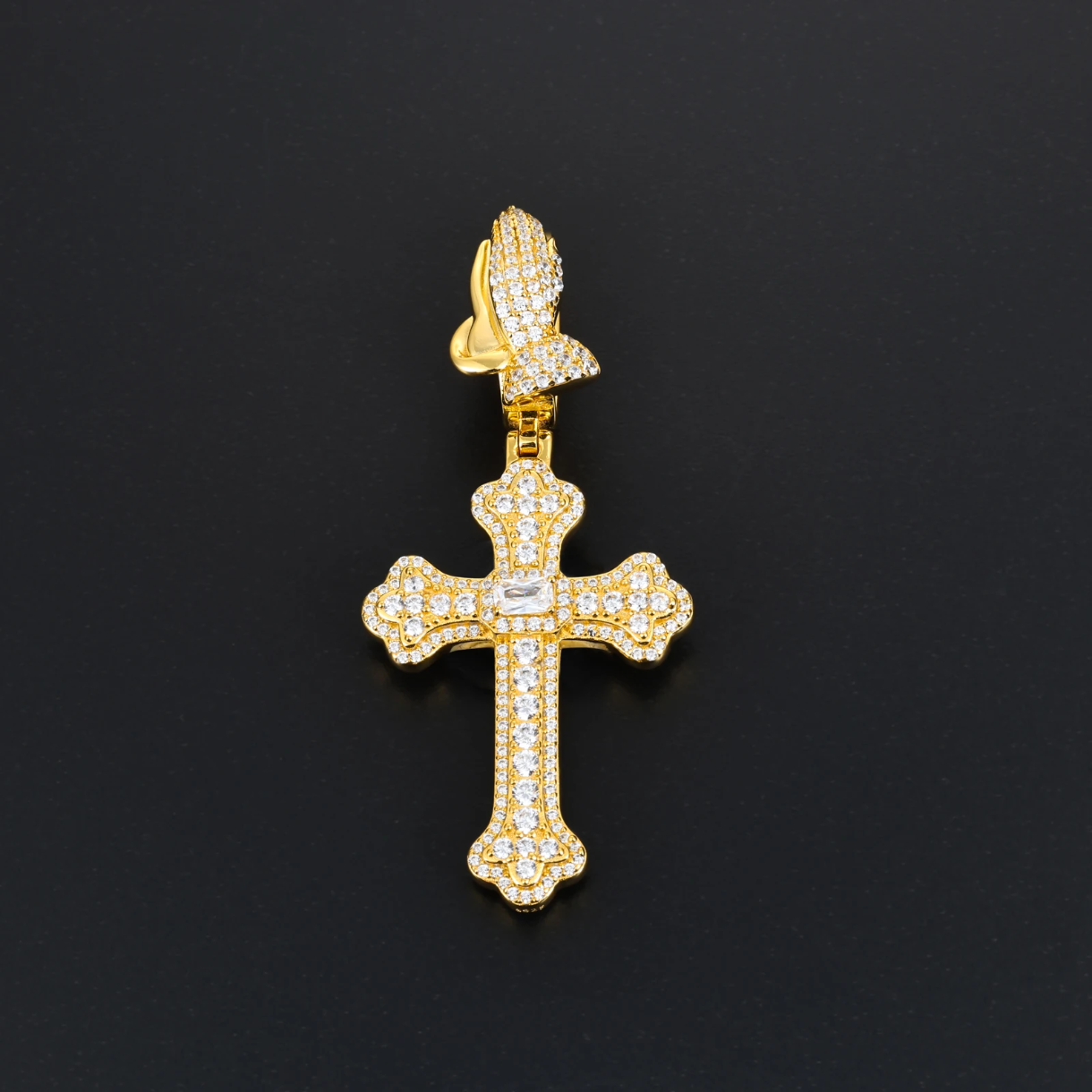 Colgante manos cruz diamantes